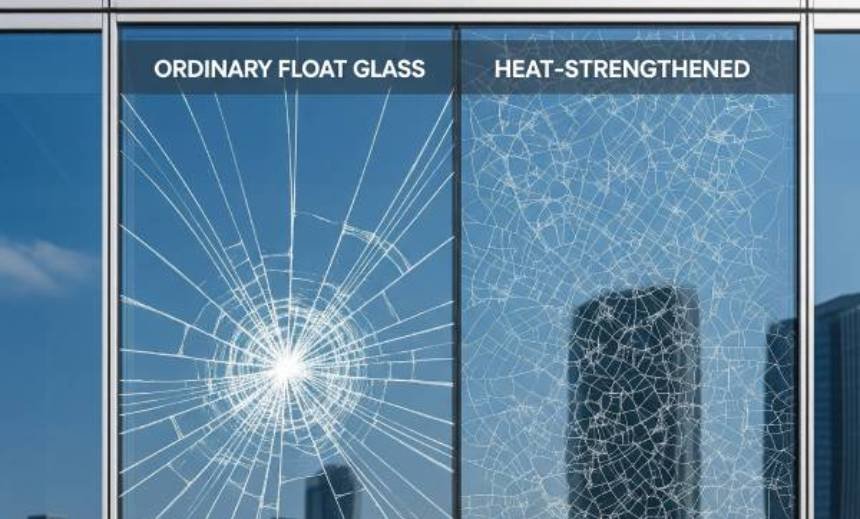 Heat Strengthened Glass is a semi-toughened glass that has been heat-treated to improve its strength and thermal resistance compared to regular float glass. While not as strong as fully tempered glass, it is approximately twice as strong as annealed glass and offers greater resistance to thermal stress. When broken, it tends to crack in a web-like pattern but usually remains in the frame, providing enhanced safety without sudden shattering. It is ideal for applications where strength, stability, and minimal risk of spontaneous breakage are required—such as facades, structural glazing, skylights, and laminated units.